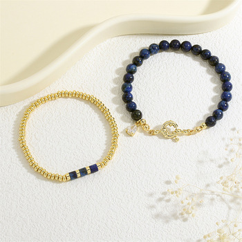 Metal tasarım anlamda etnik tarzı Lapis Bracelet li bilezik yarı değerli taş mavi gizemli Modern bahar toka bilezik 1842