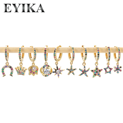 EYIKA moda kaktüs zirkon Hoop küpe fabrika çıkış kadın küpe popüler 14k altın takı toptan