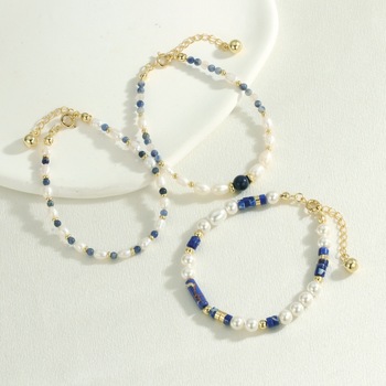 בארוק מים מתוקים פנינה לאפיס לזולי צמיד עבודת יד נישה קליל 1979