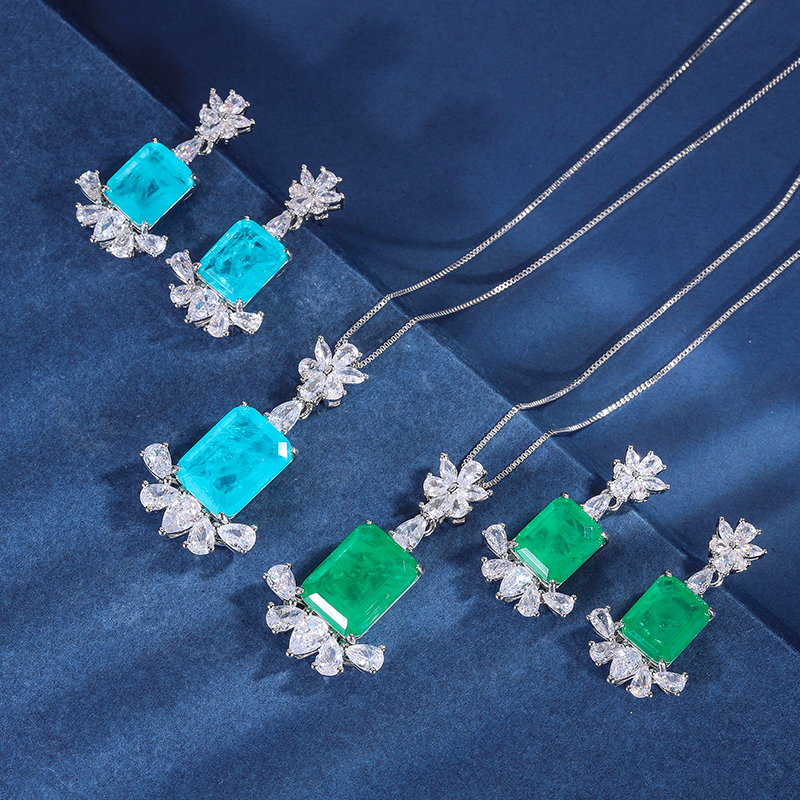 Brasile tormalina semi joias Square Fusion Set di gioielli collana con pendente in cristallo di vetro brasile Fusion gioielli di lusso per donna