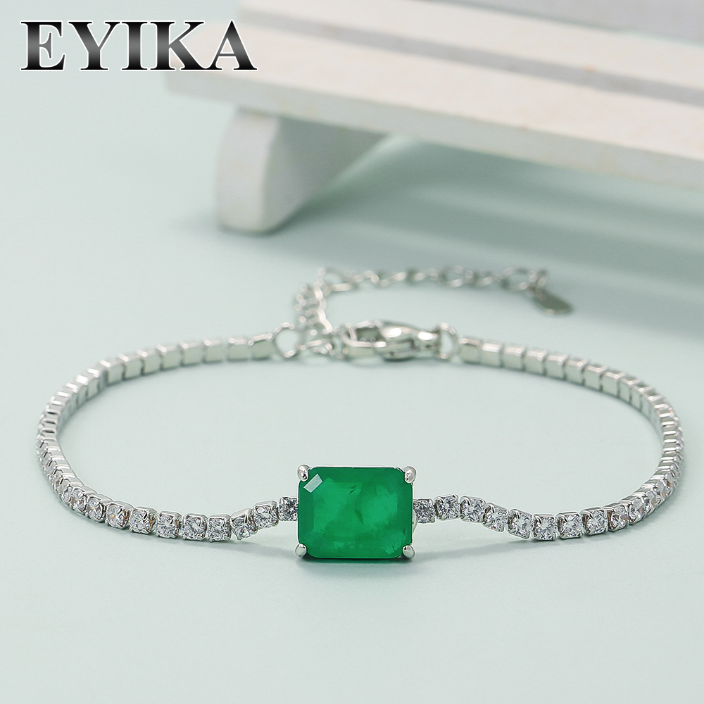 EYIKA Vintage smeraldo verde gioielli ottone Tennis perlina braccialetto di fusione gioielli Fusion rettangolo Tennis pietra bracciali donne