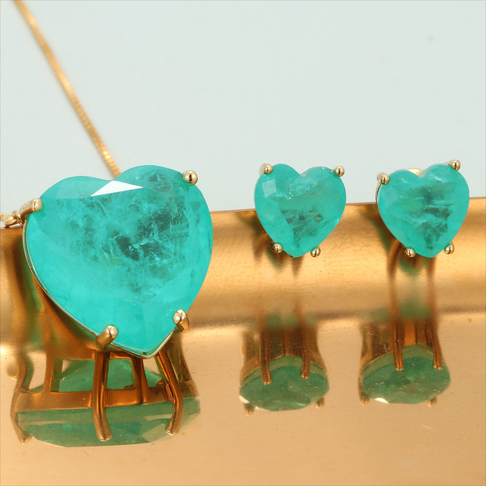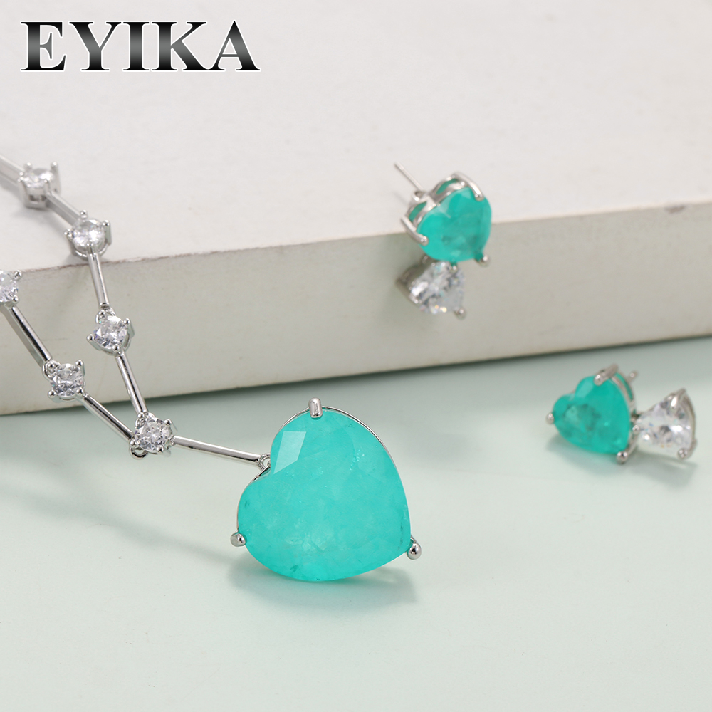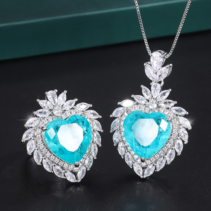 Bianco Placcato Oro di Fusione Paraiba di Cristallo Della Pietra Preziosa Collana Withe Orecchini a Forma di Cuore Gioielli Per Le Donne