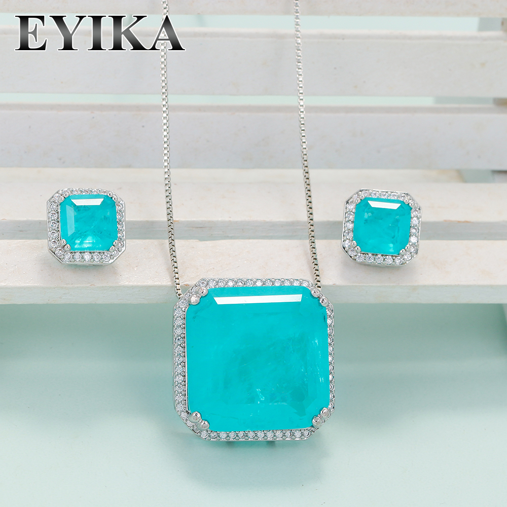 Paraiba Tormalina Smeraldo Quadrato Blu di Fusione di Vetro Collana Pendente di Cristallo Brasile Gioielli per le Donne